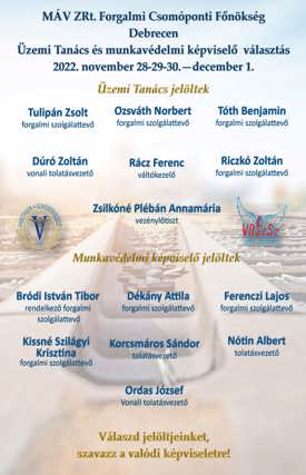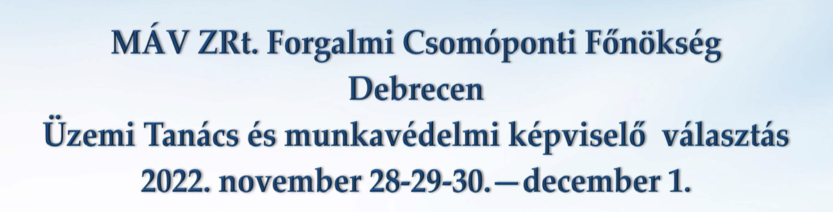 Debrecen Forgalmi Csomóponti Főnökség: ÜT- és munkavédelmi képviselő-választások november 28. és december 1. között!