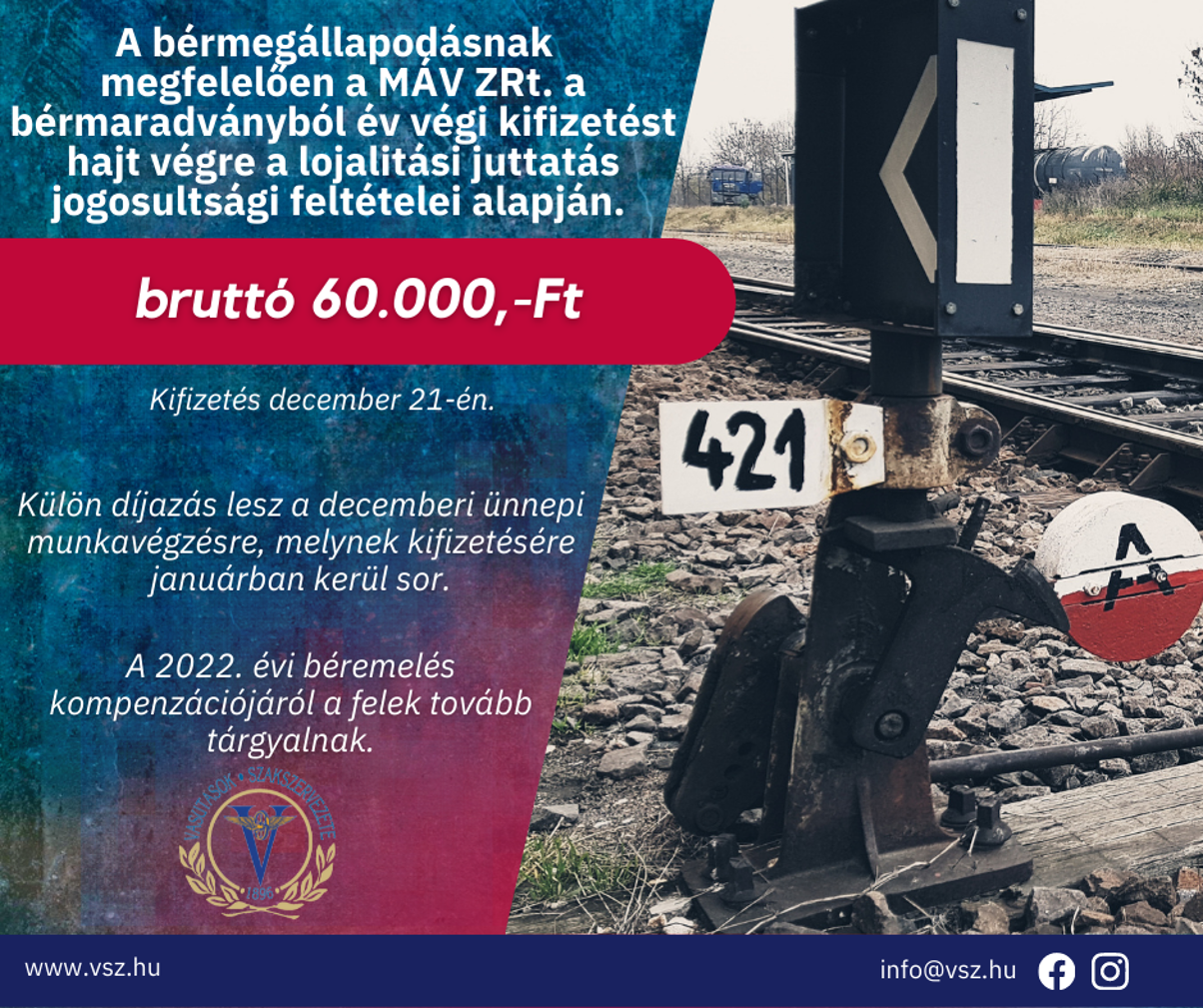 - A 2022. évi minimálbér és garantált bérminimum emelésének hatásai kapcsán a felek megállapították, hogy MÁV-Volán-csoport szinten nem elsősorban a minimálbér és a garantált bérminimum követelményeinek való megfelelés, sokkal inkább a jogszabály által előírt béremelések végrehajtása következtében kialakuló bértorlódás érinti a nagyobb munkavállalói kört.