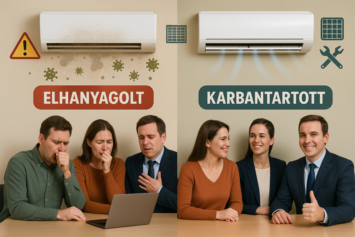 Megítélésünk szerint a válasz nemcsak kényelmi szempontból fontos, hanem egyenesen életbevágó lehet. A levegő minősége, a megfelelő páratartalom és szellőzés ugyanis nem csupán a komfortérzetet befolyásolja, hanem közvetlen hatással lehet a dolgozók egészségére és munkateljesítményére is. A karbantartás hiánya pedig – amint azt hatósági vizsgálatok is alátámasztják – súlyos következményekkel járhat: légúti megbetegedések, allergiás tünetek, bőrirritáció és akár tűzvédelmi kockázatok is leselkedhetnek az elhanyagolt rendszerek mögött.